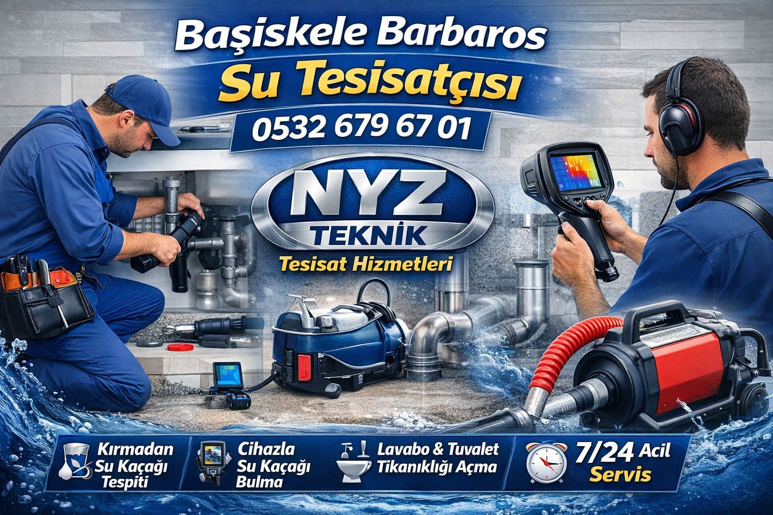 ekibi; kırmadan su kaçağı tespiti, kameralı tıkanıklık açma ve tesisat onarım hizmetlerinde net bilgilendirme ile çalışır.